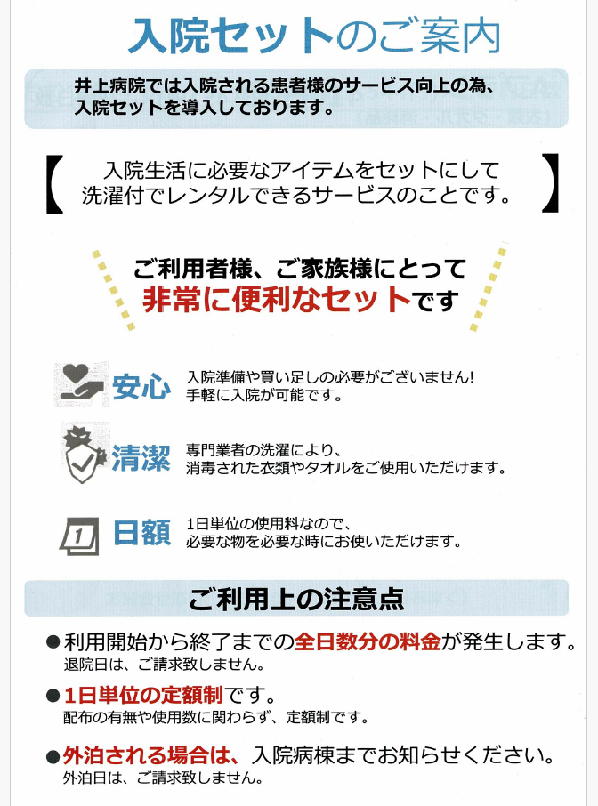 入院セットについてのご案内